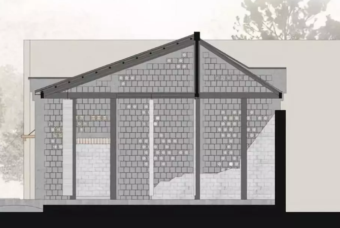 湖南大学:场地之中,由植物枝叶覆盖的上部空间和由场所遗存矮墙营造的下部空间,凸显出较为消极的中部空间。同时,场地中的台地关系较为突出,我们希望设计尽可能利用场所 ... ...