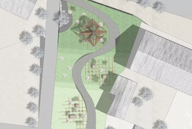 中国矿业大学:中国矿业大学的方案「影弋亭」以夏木塘村的太极梅花桩作为形式出发点,融入迷宫与竹亭等元素,自虚而入,循实以出,流线回环,暗合“趣村”之意。选址位于小活 ... ...