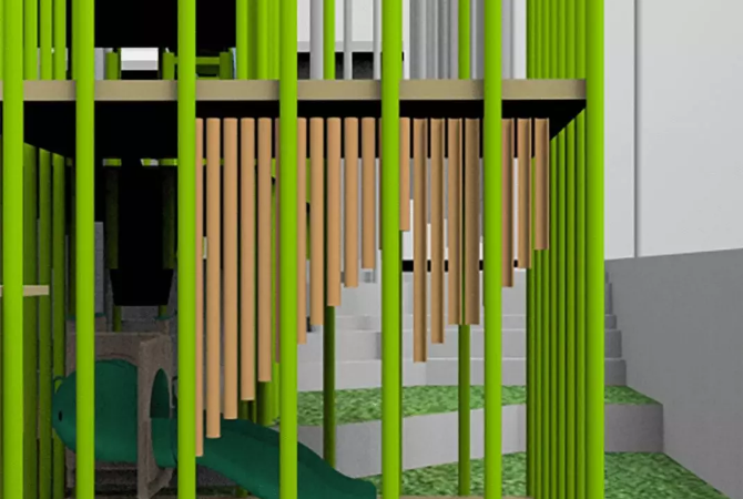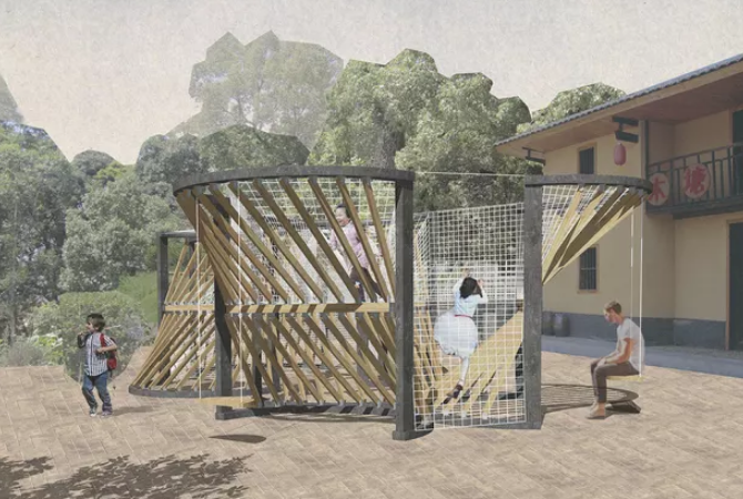 河北工业大学:从建造环境的场地特质出发,回应“趣村”主题,通过空间形态和声学装置,营造隐匿于林间的激发儿童多种知觉体验的游戏场所。起伏变化的底面空间与顶部开洞空间的 ... ...
