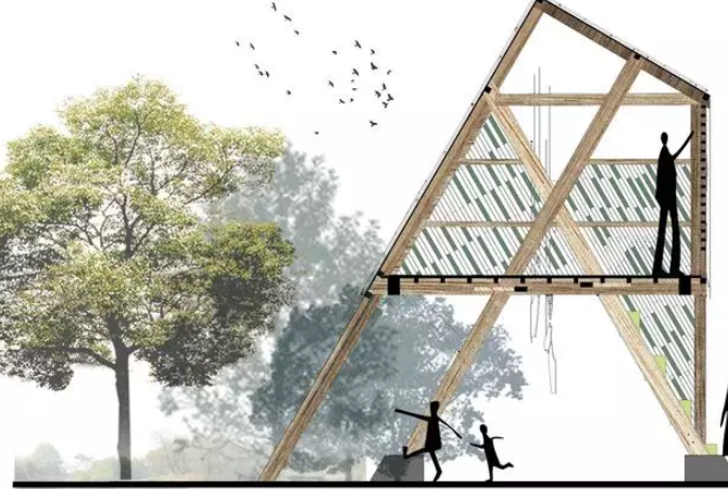同济大学:将剧场这种经典的建筑学空间原型作为引发乡村公共生活的“趣”点,探索剧场的空间模式与乡村公共行为效应的多种可能型。建造上使用竹片与槽钢铰接固定,弹性线起拱 ... ...